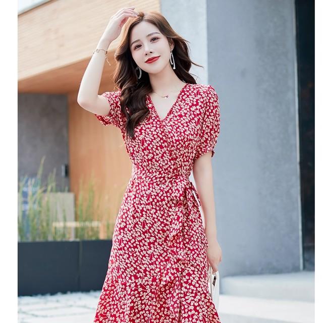 魅了 レディース ワンピース 大きいサイズ 花柄 春 夏 Aライン 大きいサイズ レースアップ 半袖 パフスリーブ ミモレ丈 Vネック ハイバスト切 超激安 Arnabmobility Com